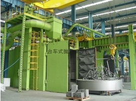 抛丸清理机是利用钢铁丸送至高速旋转的圆盘上,利用离心力的作用,使高速抛出的钢丸撞击零件表面,达到光饰的目的,抛丸清理机能使零件表面产生压应力,而且没有含硅粉末,对环境污染小。   抛丸机主要用途如下:   ①抛丸清理机使零件表面产生压应力,可提高它们的疲劳强度及抗拉应力腐蚀的能力;   ②抛丸清理机可对扭曲的薄壁零件进行校正;   ③抛丸清理机的工艺代替一般的冷、热成型工艺,对大型薄壁铝制零件进行成型加工,不仅可避免零件表面有残余拉应力,而且可获得对零件有利的压应力。应注意的是:抛丸清理机处理过的零件的使用温度不能太高,否则  压应力在高温下会自动消失,因而失去预期的效果。它们的使用温度由零件的材质决定,对于一般钢铁零件约为260—290℃,铝制零件只有170℃。   其中有大型工件及复杂工件必须得采用喷砂房或者采用自动喷砂机来完成,喷砂房蜂窝地板管道为我公司专利产品,受国家保护,使用寿命在10年左右,除尘采用集中滤筒式处理,达到国家环保要求,在噪音问题可以达到国家规定85分贝以下甚至更低,按照客户要求来决定!在喷砂处理中可以达到国家及国际标准SA级别,内壁喷砂,外部喷砂,抛丸都可达到理想效果!